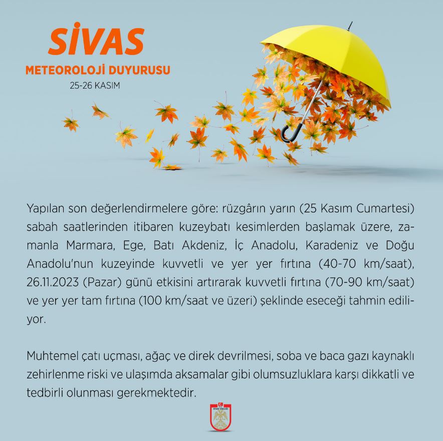 Dikkat Sivas! Valilik Uyardı! Cumartesi-Pazar Dışarıda Olmayın!