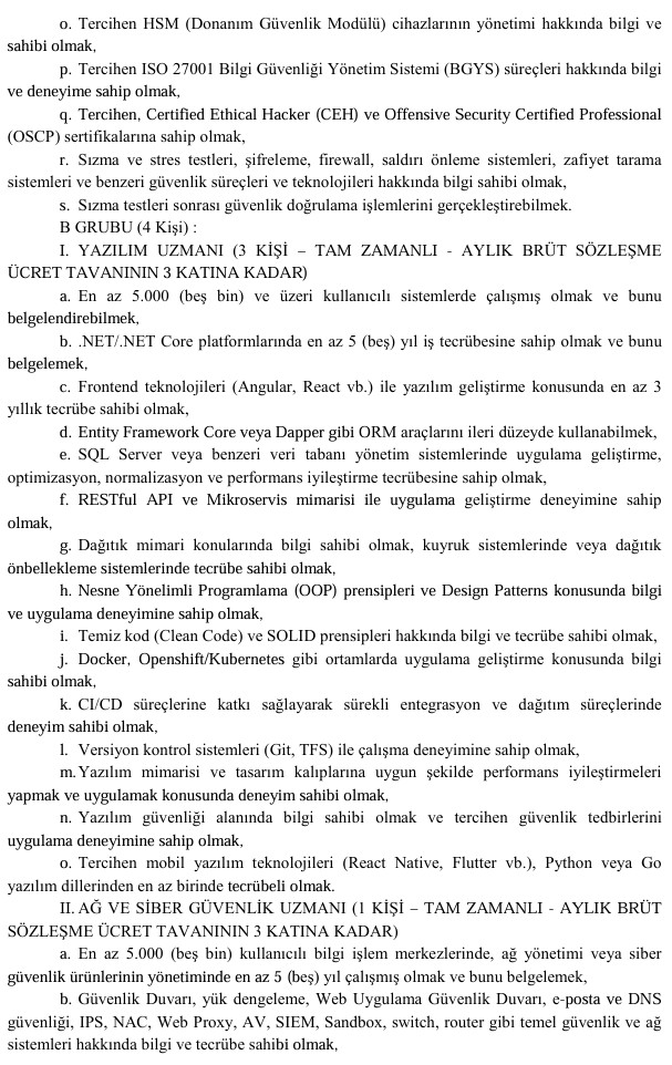 - İlgili bölümlerin dışında kalan fakültelerden bilgisayar ve teknoloji üzerine eğitim veren bölümlerden mezun olanlar da başvurabilecek,