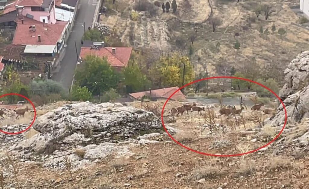 Divriği'de yerleşim yerine yakın bir noktada görülen dağ keçileri şaşkınlık yaşattı. Sarp kayalıklarda ve dik yamaçlarda hayat süren dağ keçileri nesli tükenmekte olan türler arasında olmasa da hızları ve yaşam alanlarının sarp kayalıklardan oluşması nedeniyle nadir görülüyor.