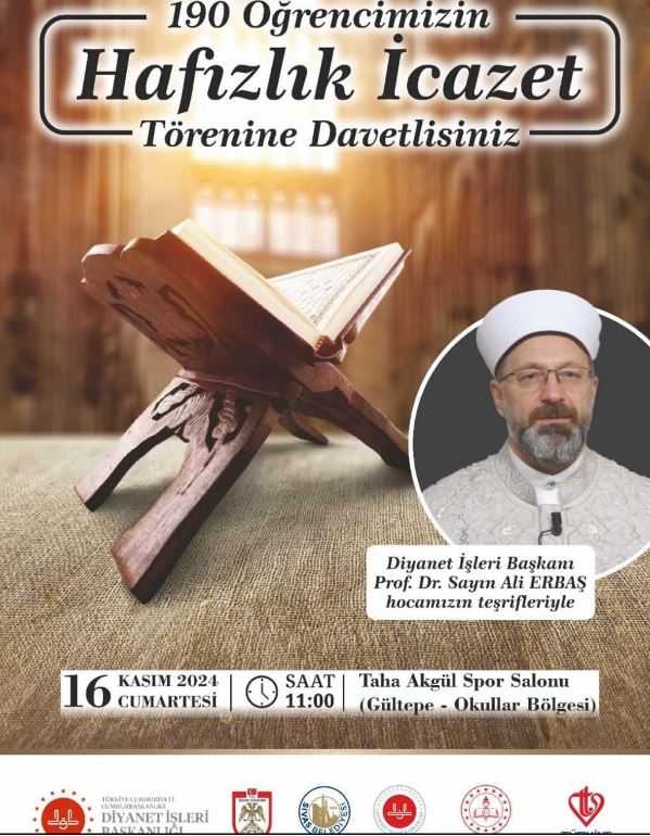 190 Öğrencinin Hafızlık İcazet töreni Sivas'ta Taha Akgül Spor Salonunda gerçekleştirilecek.