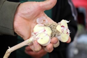 Covid-19 ile sarımsak tüketiminin arttığını ifade eden Ertuğrul Yeşil, “Sarımsağın şuanda kilosu 10-15 lira arasında bulunuyor. Üretim fazla olunca fiyat düşüyor. Sarımsakta tıpkı soğan gibi yemeklerde bol kullanılıyor.