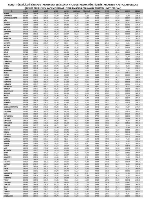 Limitler, illerin 12 aylık ortalama doğalgaz tüketim verilerine göre hesaplandı. Bu nedenle her ilde uygulanacak sınırlar farklılık gösterecek.