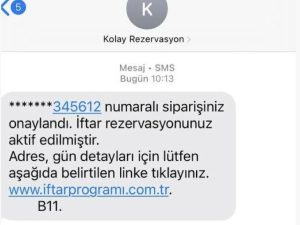 Son dönemde, “İftar rezervasyonunuz aktif edilmiştir” içerikli mesajlar ile kişileri kandırmaya çalışan dolandırıcılar, bu mesajlara ekledikleri zararlı linkler aracılığıyla banka hesaplarından özel bilgilere kadar birçok veriye ulaşmayı hedefliyor.