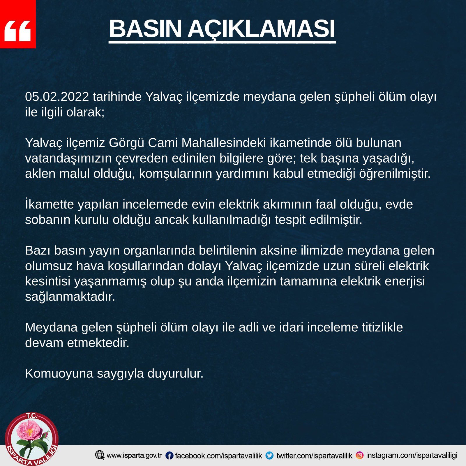 Isparta Valiliği, ölü bulunan Nazlı ile ilgili olarak bir açıklama yaptı. Açıklamada Nazlı'nın “aklen malul olduğu, komşularının yardım teklifini kabul etmediği” öne sürüldü.