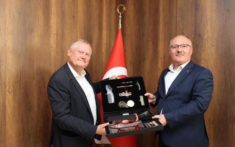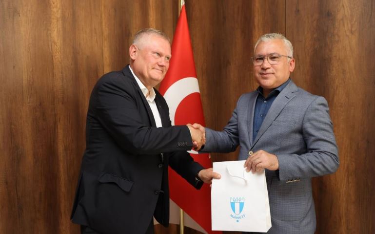 Sivasspor Kulübü Başkanı Mecnun Otyakmaz, yemeğin ardından günün anısına Malmö yöneticilerine plaket hediye etti.