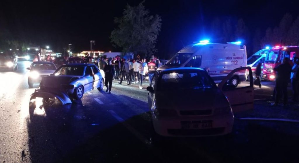 Edinilen bilgilere göre olay Sivas-Kayseri kara yolu Taşlıdere kavşakta meydana geldi. Y.Ö. yönetimindeki 58 ACB 758 plakalı Opel marka otomobil, düğünden çıktıkları öğrenilen T.D. idaresindeki 58 HK 646 plakalı Fiat marka otomobil ile kavşakta çarpıştı. Kazada araçların içerisinde bulunan 9 kişi yaralandı. Durumun bildirilmesi üzerine olay yerine çok sayıda sağlık, polis ve itfaiye ekipleri sevk edildi. Yaralılar olay yerinde yapılan ilk müdahalenin ardından ambulanslarla kentteki hastanelere kaldırıldı. Yaralılardan birinin durumunun ağır olduğu öğrenilirken kaza ile ilgili inceleme başlatıldı. (İHA)