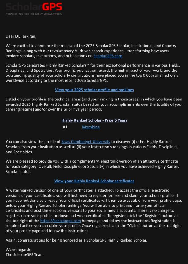 Sivas Cumhuriyet Üniversitesi, Ahmet Şevki Taşkıran, dünya birincisi, ScholarGPS 2025, tıp fakültesi, bilimsel başarı, morfin araştırmaları