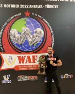 Antalya’da gerçekleştirilen Dünya Bilek Güreşi Şampiyonası’na katılan Eskişehirli sporcu Serhat Evren Arslan, 5’inci kez dünya şampiyonu oldu.