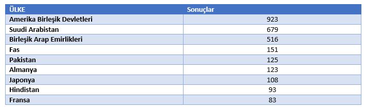 Yapılan incelemeye göre, TOGG ile ilgili en fazla yansıma görülen ülke Amerika Birleşik Devletleri oldu. ABD’yi, Suudi Arabistan, Birleşik Arap Emirlikleri ve Fas takip etti.
