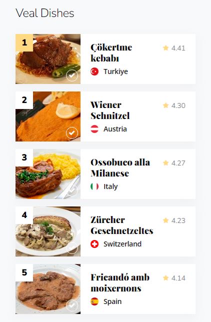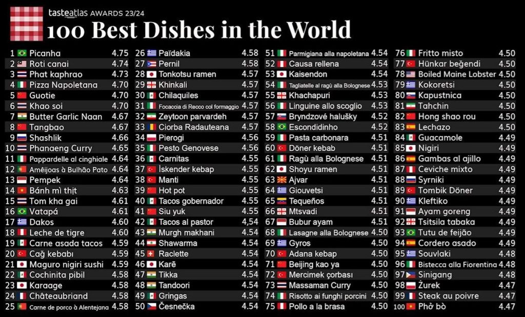 Kullanıcı derecelendirmelerine göre dünyanın en iyi 100 yemeğinin listesi yayınlandı.
