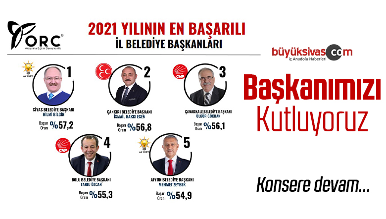 Açıklanan verilere göre en başarılı Belediye Başkanı Hilmi Bilgin olarak açıklandı.