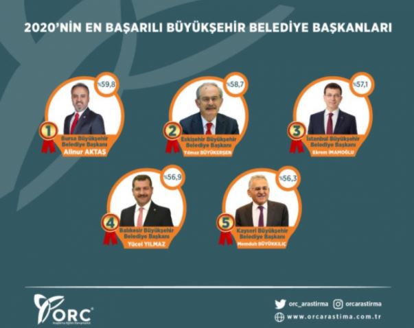 ORC'nin yapmış olduğu araştırmaya göre büyükşehirlerde en başarılı Başkan, Bursa Büyükşehir Belediye Başkanı Alinur Aktaş oldu.