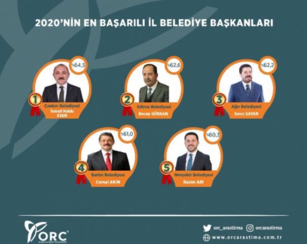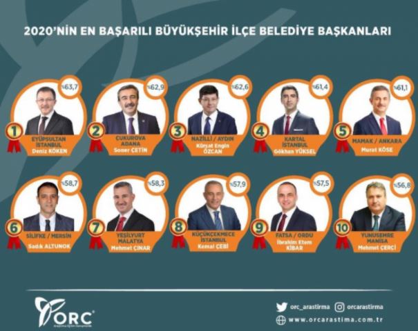 En başarılı ilçe belediye başkanları sıralamasında ise başı Eyüpsultan Belediye Başkanı Deniz Köken çekti.