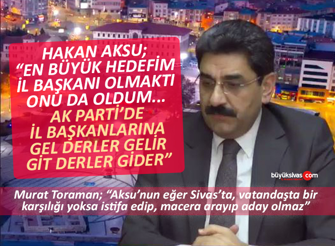 Hakan Aksu'nun SRT'de konuk olduğu esnada aynı dakikalarda World Turk ekranlarında Büyük Sivas ile ortak yayınlanan Memleket Meseleleri programına konuk olan AK Parti 23. dönem Sivas İl Genel Meclis Üyesi Murat Toraman "Genel Merkez kimseye kibarlık yapmak zorunda değil... Bir başarısızlık varsa tedbirini alır çağırır istifa et der... Hakan Aksu partimizin İl Başkanıdır. Kendisine İl Başkanlığı görevi verilmiştir. Milletvekili olmayı elbette ister, hayal eder. Ama bu onun vereceği karar değil. Doğrudan ben aday olacağım deyip genel merkezin çalışmasında kendisine "sizden vekil olmaz, karşılığınızız yok" gibi bir durum karşısına konursa buna rağmen de Hakan Aksu istifa edip aday olmaz." dedi.