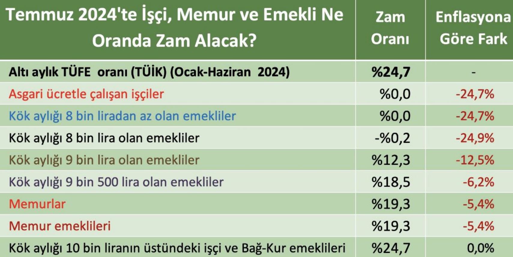 Bu kapsamda haziran verileriyle birlikte 6 aylık enflasyon farkına göre elde edilmiş maaşlar belli oldu.