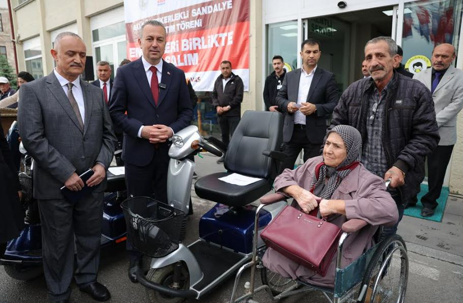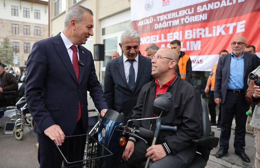 Hollanda’dan hayırsever vatandaşların desteğiyle temin edilen akülü ve tekerlekli sandalyeler, Sivas Belediyesi koordinesinde engelli bireylere teslim edildi.