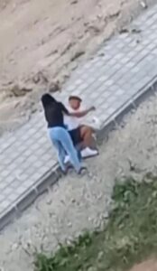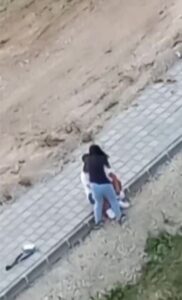Kaldırımda oturan erkeğe defalarca kez “Seni öldürürüm” diye tehditte bulunan genç kız, daha sonrada erkeğe şiddet uygulamaya başladı. Tokat atan genç kıza erkeğin tepki göstermesi de dikkat çekti.