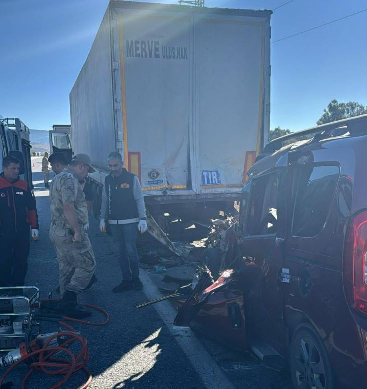 Erzincan'da Fiat Doblo marka otomobilin yol kenarında duran tıra arkadan çarpması sonucu meydana gelen trafik kazasında 3 kişi hayatını kaybetti, 2 kişi ağır yaralandı.