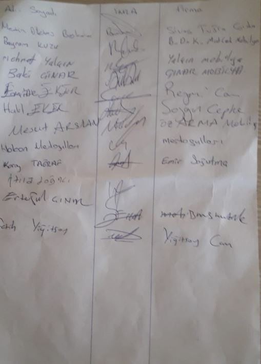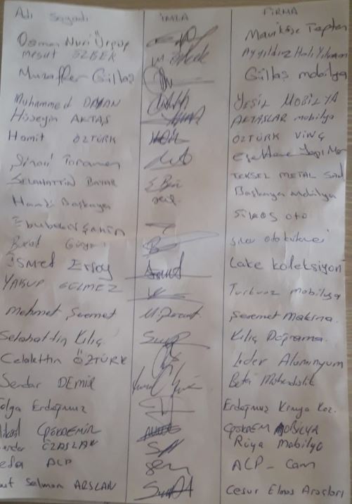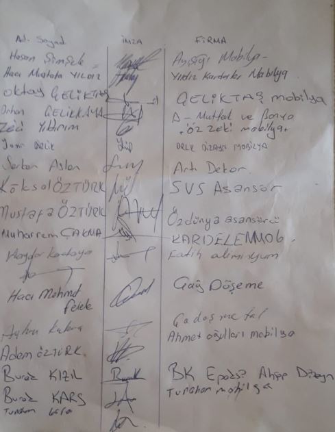 Esnafların yazdıkları dilekçe ve topladıkları imzalar şöyle :