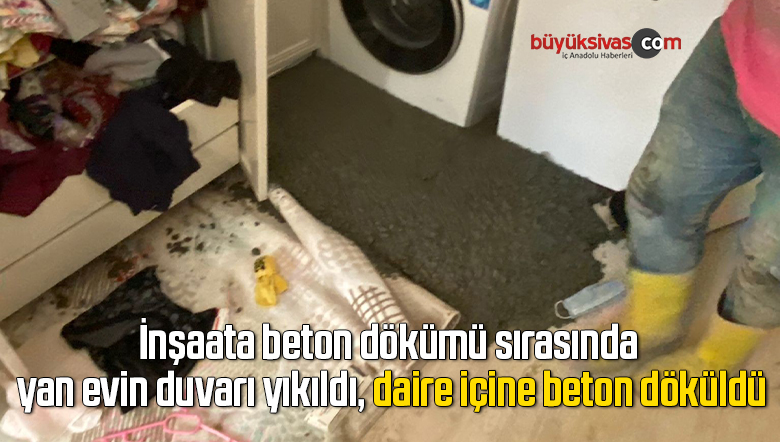 İnşaata beton dökümü sırasında yan evin duvarı yıkıldı, daire içine beton döküldü