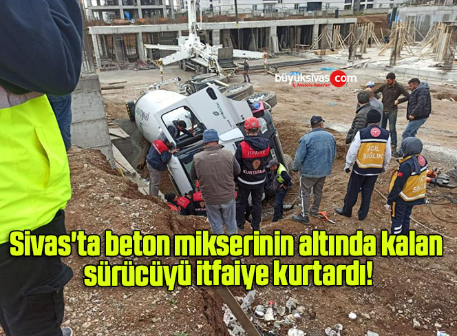 Sivas’ta beton mikserinin altında kalan sürücüyü itfaiye kurtardı!