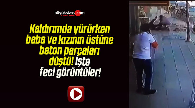 Kaldırımda yürürken baba ve kızının üstüne beton parçaları düştü! İşte feci görüntüler!