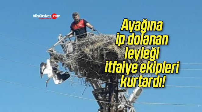 Ayağına ip dolanan leyleği itfaiye ekipleri kurtardı!
