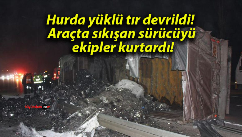 Hurda yüklü tır devrildi! Araçta sıkışan sürücüyü ekipler kurtardı!