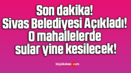 Son Dakika! Sivas’ta O Mahallelerde Sular Kesilecek!