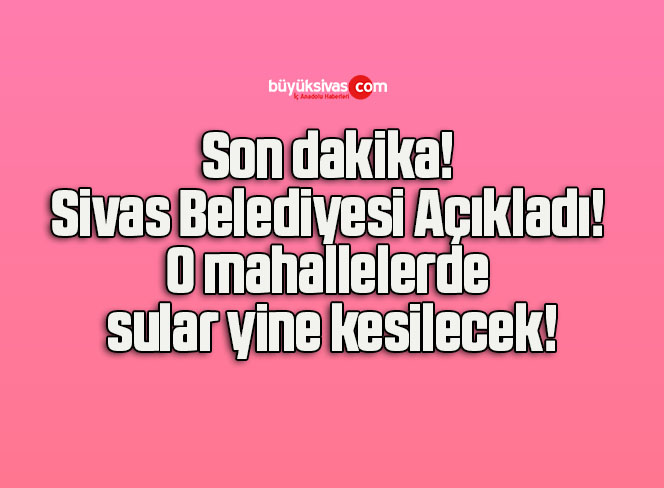 Sivas Belediyesi Açıkladı! Oralarda Sular Kesilecek!