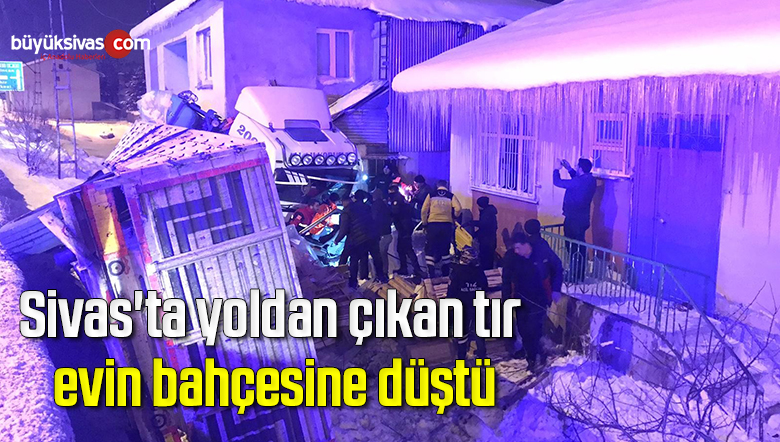 Sivas’ta yoldan çıkan tır evin bahçesine düştü