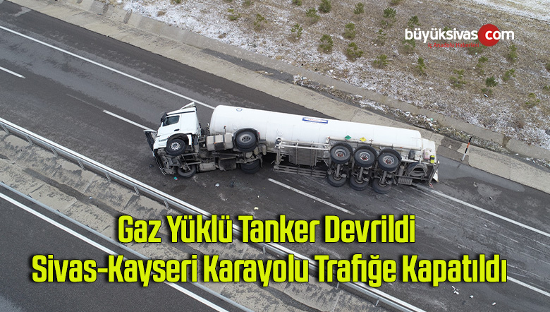 Gaz yüklü tanker devrildi, Sivas-Kayseri Karayolu trafiğe kapatıldı