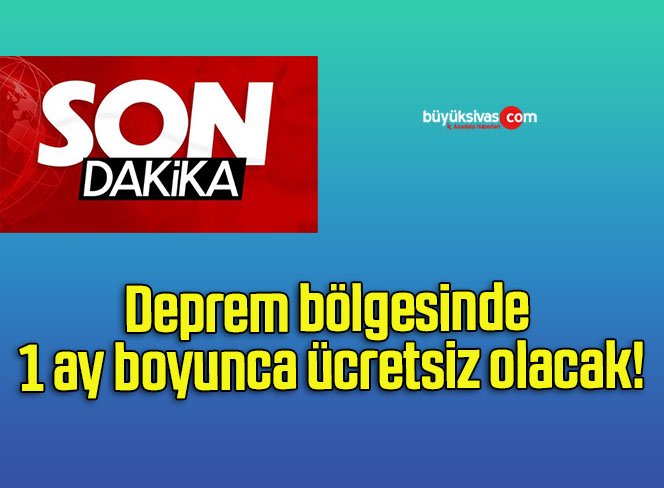 Deprem bölgesinde 1 ay boyunca ücretsiz olacak!