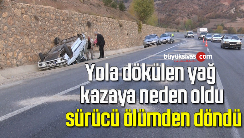 Yola dökülen yağ kazaya neden oldu, sürücü ölümden döndü