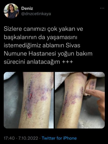 Sosyal medya üzerinden Büyük Sivas Medya Grubu başta olmak üzere Sağlık Bakanlığı, Bakan Fahrettin Koca gibi bir çok isme ulaşmaya çalışan acılı kardeş Deniz Çetinkaya attığı tweetler ile ablasının yaşadığı mağduriyeti dile getiriyor...