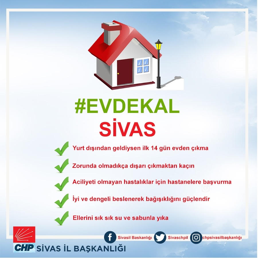 Cumhuriyet Halk Partisi Sivas İl Başkanı COŞKUN, COVID-19 virüsü ile karşı karşıya kaldığımız bu günlerde halkımızın daha tedbirli olmasını, hijyen kurallarına dikkat etmesini ve değerli hemşerilerimizden zorunlu olmadıkça evlerinden çıkmamasını rica etti.