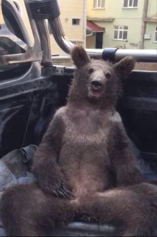 Bir çiftçi kovanlarının yakınında boz ayının bayıldığını fark etti. Korkarak yanına yaklaşınca, ayının hayatından endişe eden çiftçi, kamyonetinin kasasına boz ayıyı yükleyerek şehir merkezine getirdi.