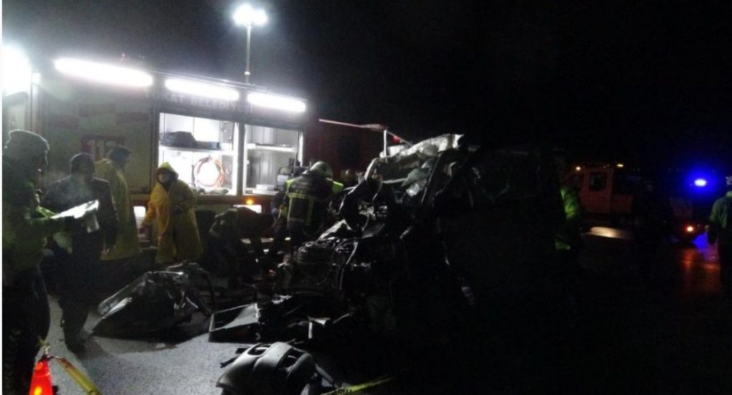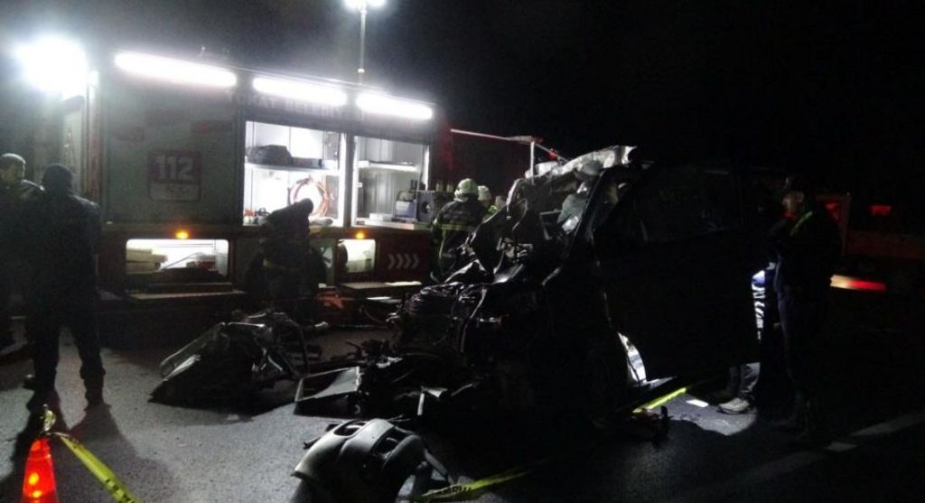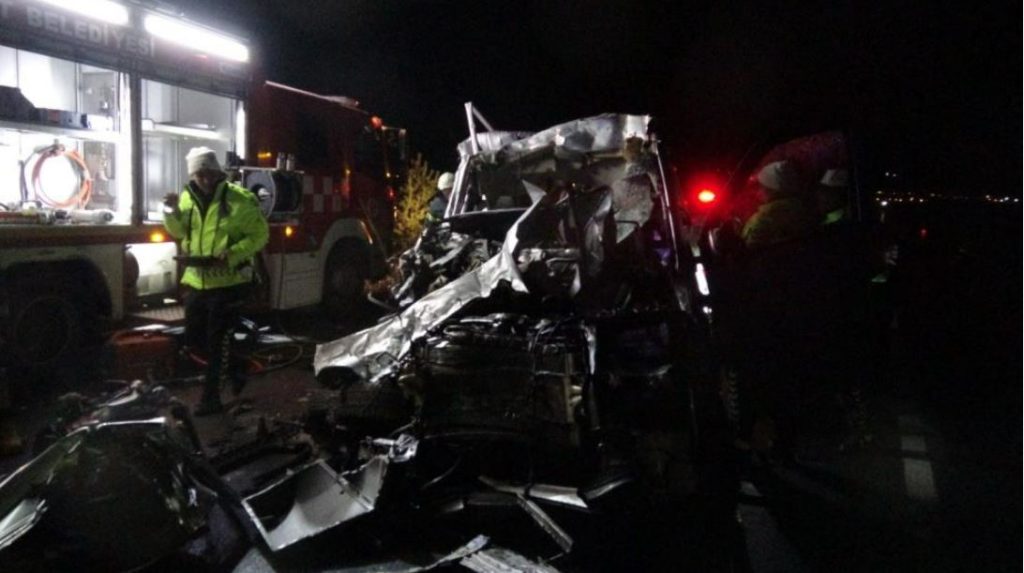 Edinilen bilgilere göre kaza, Tokat-Sivas karayolu Yatmış köyü mevkiinde çift taraflı olarak meydana geldi. Sivas istikametinden Tokat istikametine giden sürücüsünün ismi öğrenilemeyen 58 AAE 502 plakalı Volkswagen marka minibüs, aynı istikamette seyir halindeki sürücüsünün ismi öğrenilemeyen 58 TC 344 plakalı kamyona arkadan çarptı. Çarpışma sonucunda minibüste bulunan 5 kişi olay yerinde hayatını kaybetti. Çevrede bulunan vatandaşların ihbarı üzerine olay yerine 112 sağlık, itfaiye ve jandarma ekipleri sevk edildi. Ekiplerin olayla ilgili incelemesi devam ederken kimlik tespit çalışmaları sürüyor. (İHA)