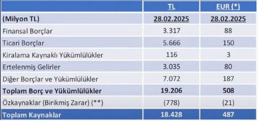 Toplantıda Fenerbahçe Denetim Kurulu tarafından kulübün mali verileri açıklandı. Yapılan bilgilendirmeye göre, Sarı-Lacivertli kulübün 28 Şubat 2025 tarihi itibarıyla konsolide borç ve yükümlülüklerinin toplamı 19 milyar 206 milyon TL (yaklaşık 508 milyon Euro) oldu.