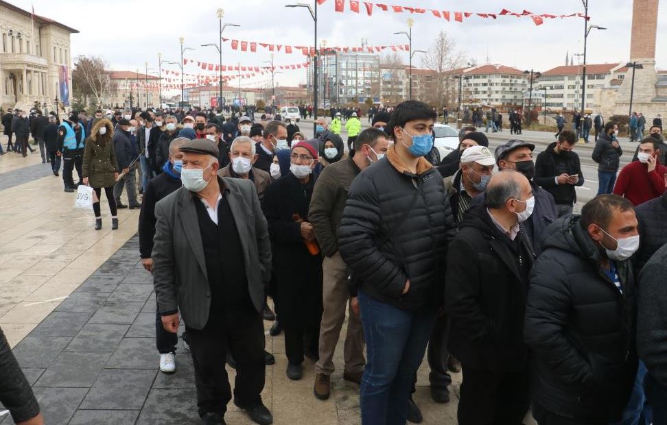 Sivas’ta Nevruz kutlamasında vatandaşların fidan alabilmek için metrelerce kuyruk oluşturması dikkat çekti.