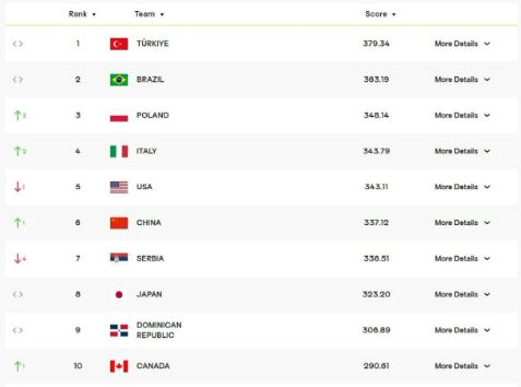 Fanatik'teki habere göre, İtalya'ya mağlubiyeti sonrası takımımız 10.65 puan kaybetti. Brezilya, as oyuncuları olmayan Sırbistan'ı 3-0 yenebilirse 8.5 puan alacak ve puanı 371.7 puana yükselecek.