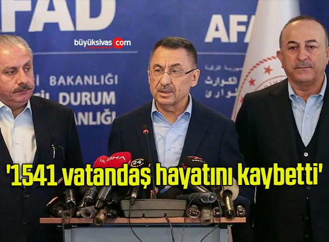 Cumhurbaşkanı Yardımcısı Fuat Oktay, Kahramanmaraş'ta meydana gelen 7,7 büyüklüğündeki depremle ilgili açıklama yaptı. Fuat Oktay can kaybının 1541'e yükseldiğini açıkladı. Oktay toplamda 9733 kişinin yaralandığını ve 3471 binanın da yıkıldığını ifade etti.