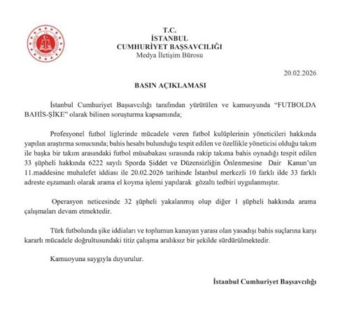Futbolda bahis iddialarına yönelik soruşturmanın çok yönlü olarak devam ettiği ve yeni gelişmelerin yaşanabileceği ifade edildi.