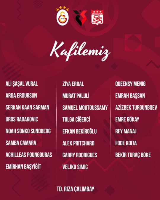 Trendyol Süper Lig’in 34. haftasında Galatasaray ile deplasmanda karşılaşacak olan Sivasspor’un maç kafilesi belli oldu.