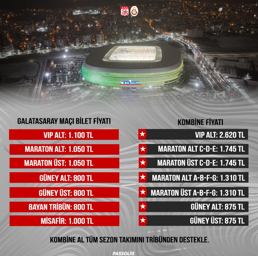 Sivasspor sosyal medya hesabından Perşembe günü oynanacak Galatasaray maçının bilet fiyatlarını ve bilet sayılarını paylaştı.