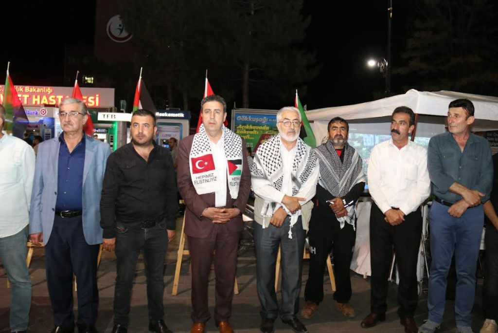 Gazze ve Filistin halkına sürekli bomba yağdıran hain İsraile birkez daha tepki gösteren İHH Başkanı Efe Zileli, “İsrail uzun bir süredir genç yaşlı, çocuk demeden katliam yapıyor. İbadethanelere ve hastanelere bomba atarak oradan çıkartmaya çalışıyor. Bu zülüm karşısında direnen Filistin ve Gazzeli kardeşlerimize destek olmak amacıyla bu çadırımızı kurmuş bulunuyoruz. Siyonist katil İsraili Müslüman kardeşlerimizi oradan çıkarmak için elinden geleni yapıyor. Filistinin özgürleşmesi ve bağımsız bir devlet olması için , buradaki soykırımı dünya’pya duyurmak , uyuyan Müslümanları uyandırmak için var gücümüzle çalışacağız ve Müslüman kardeşlerimize dua edeceğiz. Desteğinizden dolayı Sesob Başkanı Sayın Hakan Demirgil ve oda başkanlarına teşekkür ediyoruz” ifadelerine yer verdi.