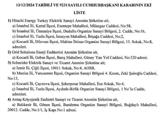 "Ekli listede belirtilen işyerlerinde Birleşik Metal-İş Sendikası tarafından alınmış olan grev kararlarının, milli güvenliği bozucu nitelikte görüldüğünden altmış gün süreyle ertelenmesine, 6356 sayılı Sendikalar ve Toplu İş Sözleşmesi Kanununun 63 üncü maddesi gereğince karar verilmiştir."