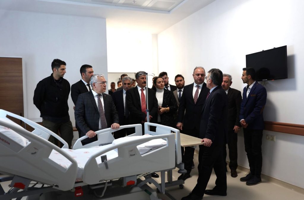 Kurdele kesimi ile açılışı yapılan hastaneyi gezen Vali Şimşek ve beraberindekiler, hasta ve doktorlarla da sohbet etti. (Halil Yavuz Canpolat)