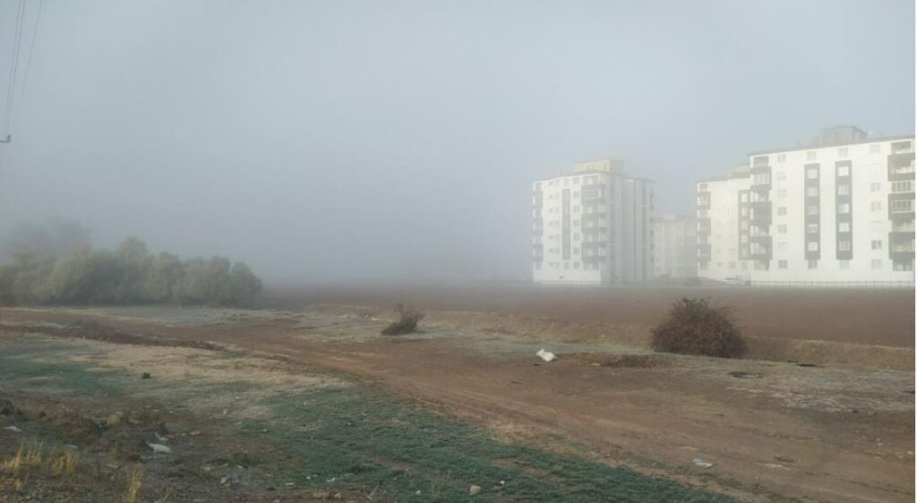 Sivas’ın Gemerek ilçesinde sabah saatlerinde etkili olan sis nedeniyle görüş mesafesi yer yer 20 metreye kadar düştü.