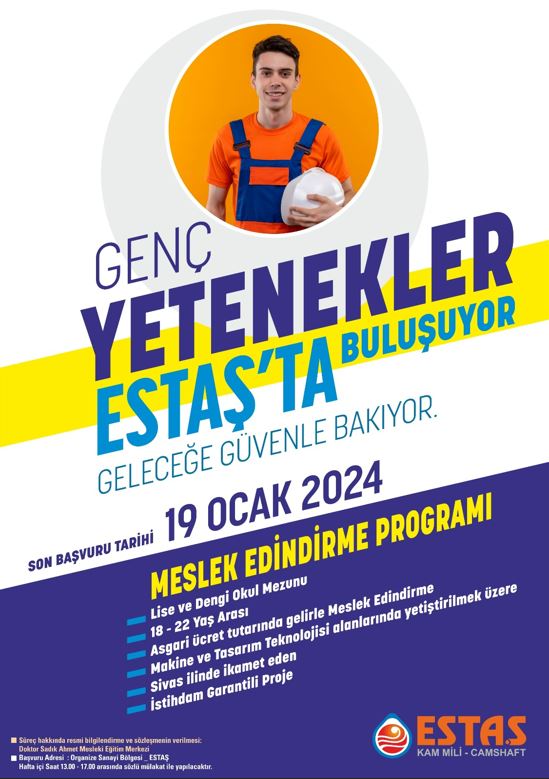 Sivas'ın lokomotif firmalarından olan ESTAŞ, yepyeni bir projeye daha imza atıyor... "Genç Yetenekler Estaş'ta Buluşuyor" projesi kapsamında yüzlerce genç Sivas'ta istihdam edilecek...